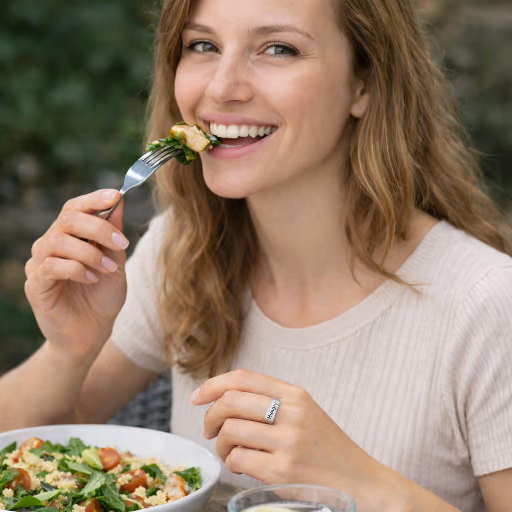 Hunger Ring is a wearable, screen-free hunger scale that helps you pause, notice hunger and fullness, and eat with greater awareness. Each purchase helps feed the hungry.